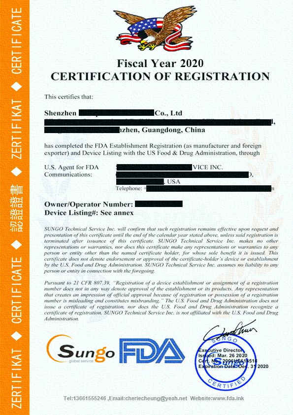 4)代理公司提交注册申请资料给美国FDA审批(根据产品做企业注册);